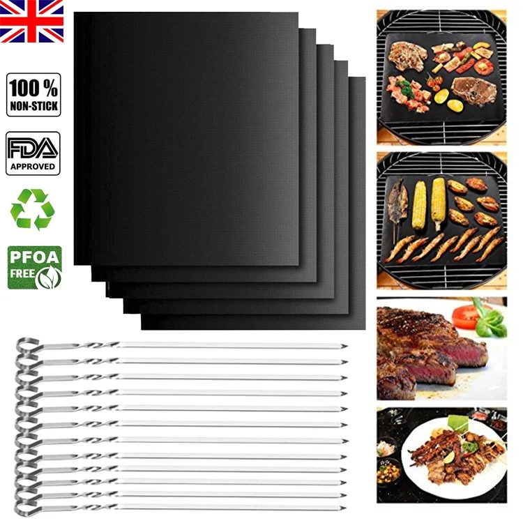 BBQ Grill Mat Barbecue Outdoor Baking Non-stick Reusable Pad & Grill BBQ Skewers