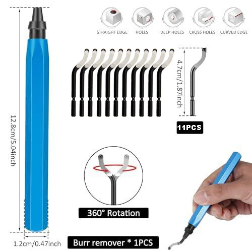 - Special detail design:Â deburring tool universal comes with a metal handle for extended use and comfort. In addition, there are 360 degree rotating high speed steel blades for high quality and flexible use. Warm tips: sharp objects, store them safely and away from the elderly and children. Small handy deburring, convenient for working. Deburrer sits comfortably in the hand and requires little force when using.